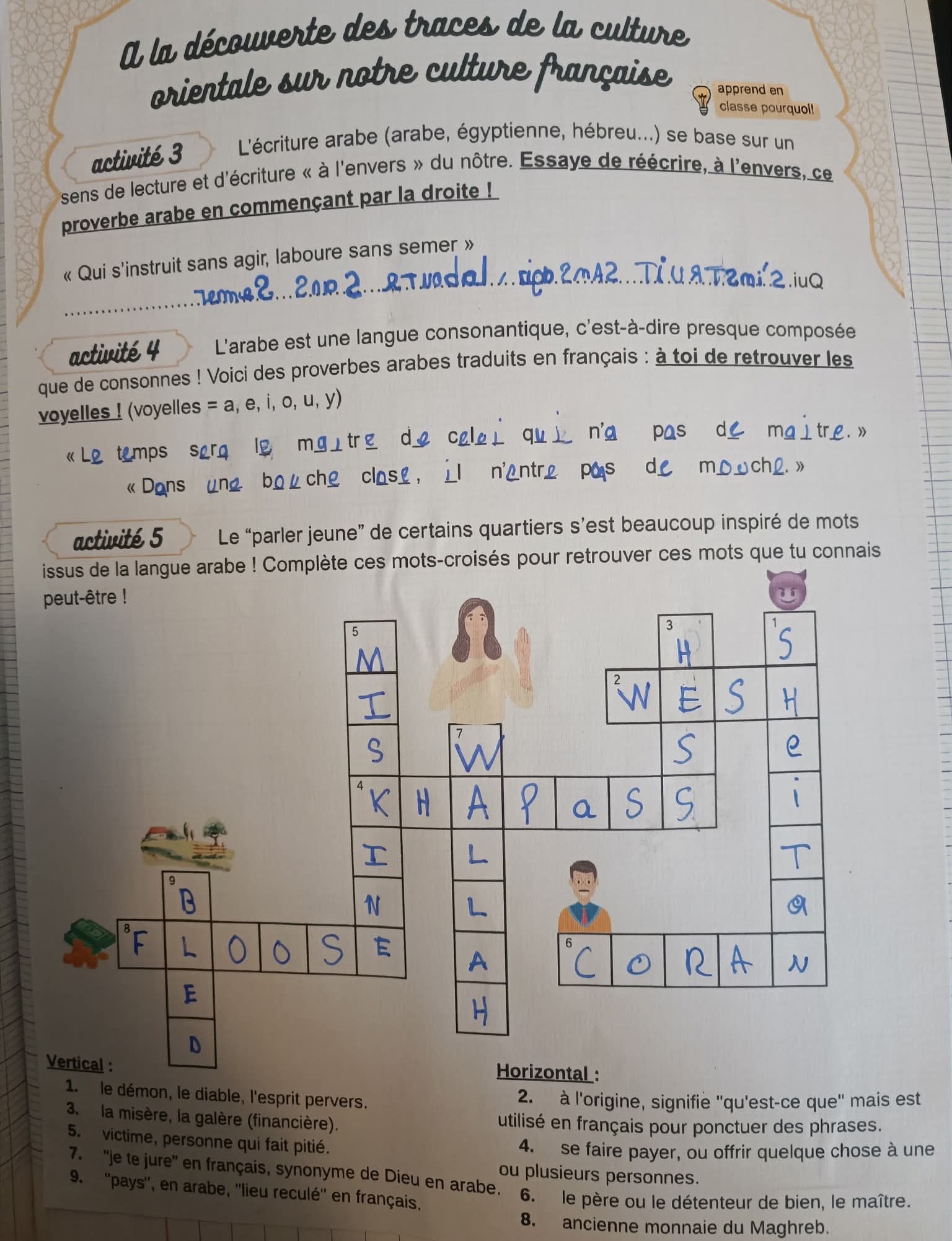 🇫🇷 France : Dans un collège du Nord, des gamins de 5e se coltinent des mots croisés avec « wesh », « wallah », « miskine », « floose » et « bled », et un quiz sur Les Mille et Une Nuits où une option hurle que la moitié de la France est raciste !