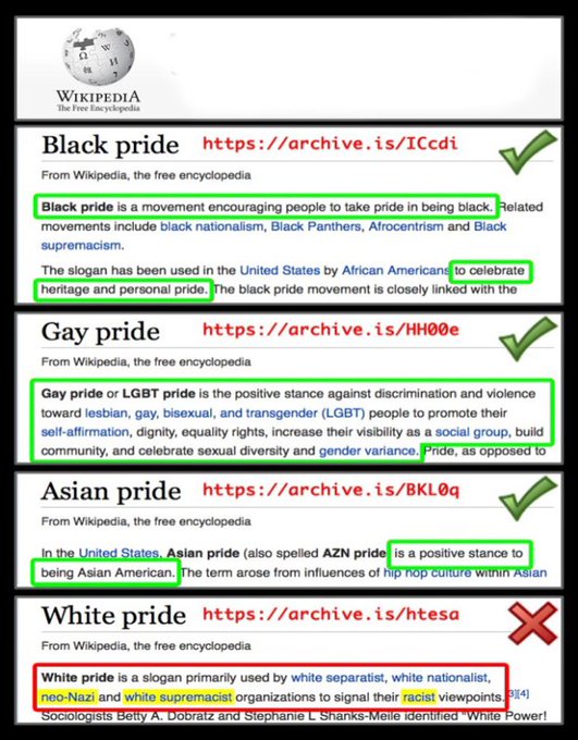 Fierté blanche étiquetée raciste toxique, mais fierté noire ou queer couronnée d’arcs-en-ciel glorieux, l’encyclopédie neutre ?