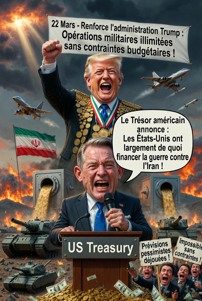 🇺🇸 États-Unis : Le Trésor américain annonce via Bessent que les États-Unis ont largement de quoi financer la guerre contre l’Iran ! Cette déclaration du 22 mars renforce l’administration Trump, assurant des opérations militaires soutenues sans contraintes budgétaires immédiates et défiant les prévisions pessimistes des opposants.