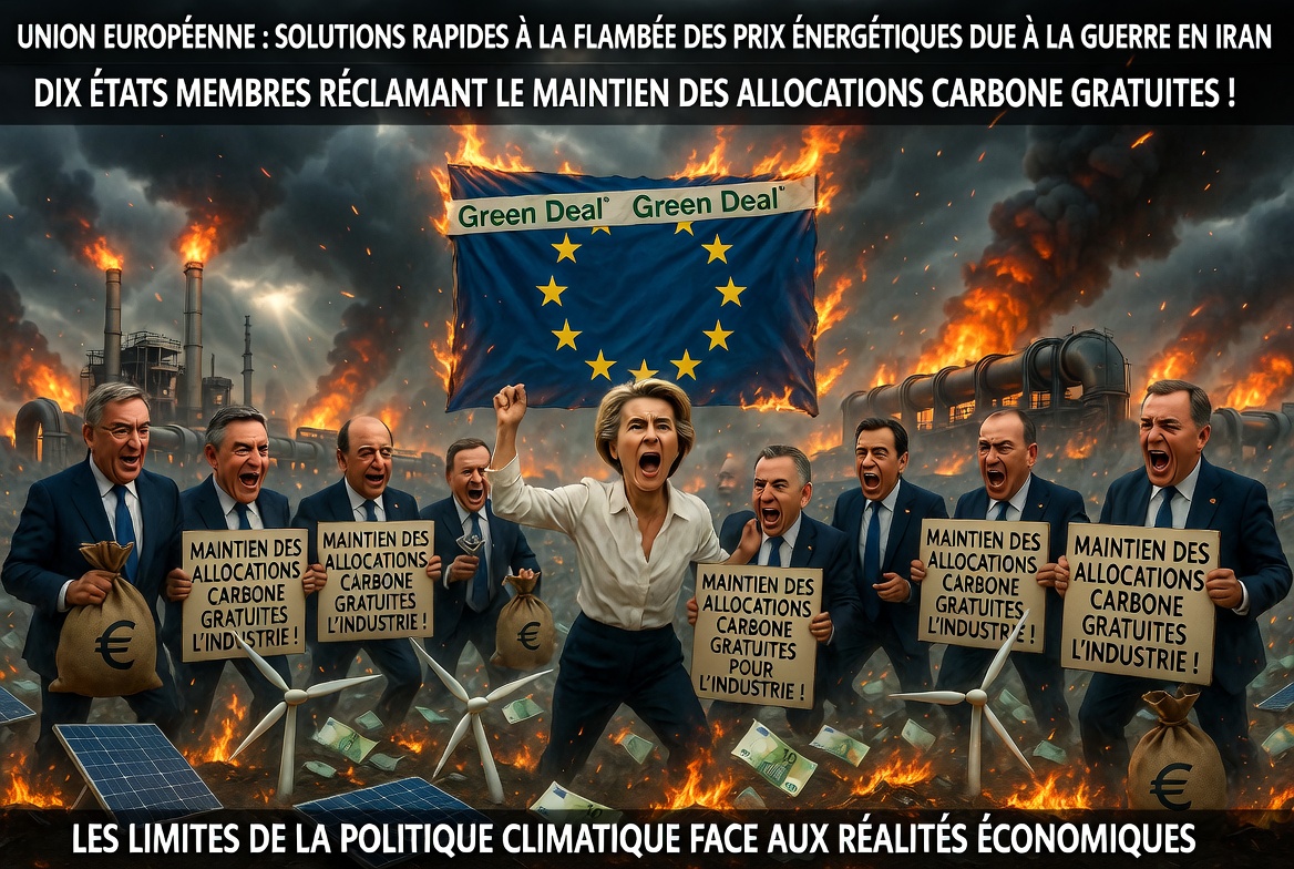 🇪🇺 Union européenne : L’Union européenne cherche des solutions rapides à la flambée des prix énergétiques due à la guerre en Iran, avec dix États membres réclamant le maintien des allocations carbone gratuites pour l’industrie ! Cette pression révèle les limites de la politique climatique de l’UE face aux réalités économiques.
