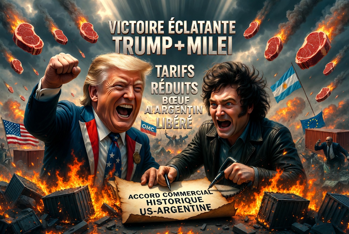 🇺🇸 États-Unis – 🇦🇷 Argentine : Les États-Unis et l’Argentine signent un accord commercial historique réduisant les tarifs réciproques et élargissant les quotas pour le bœuf argentin ! Une victoire éclatante pour Trump et Milei qui accélère l’ouverture de l’économie argentine et renforce l’alliance contre les élites protectionnistes.
