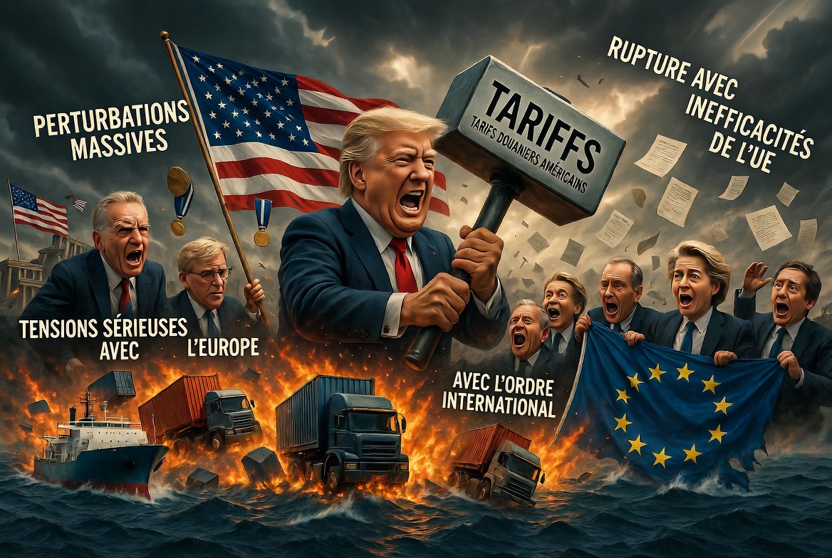 🇺🇸 États-Unis – 🇪🇺 Union européenne : Les tarifs douaniers américains, au cœur de la politique des États-Unis, provoquent des perturbations massives dans les chaînes d’approvisionnement et des tensions sérieuses avec l’Europe ! Cela marque une rupture avec l’ordre international précédent, exposant les inefficacités de l’Union européenne.