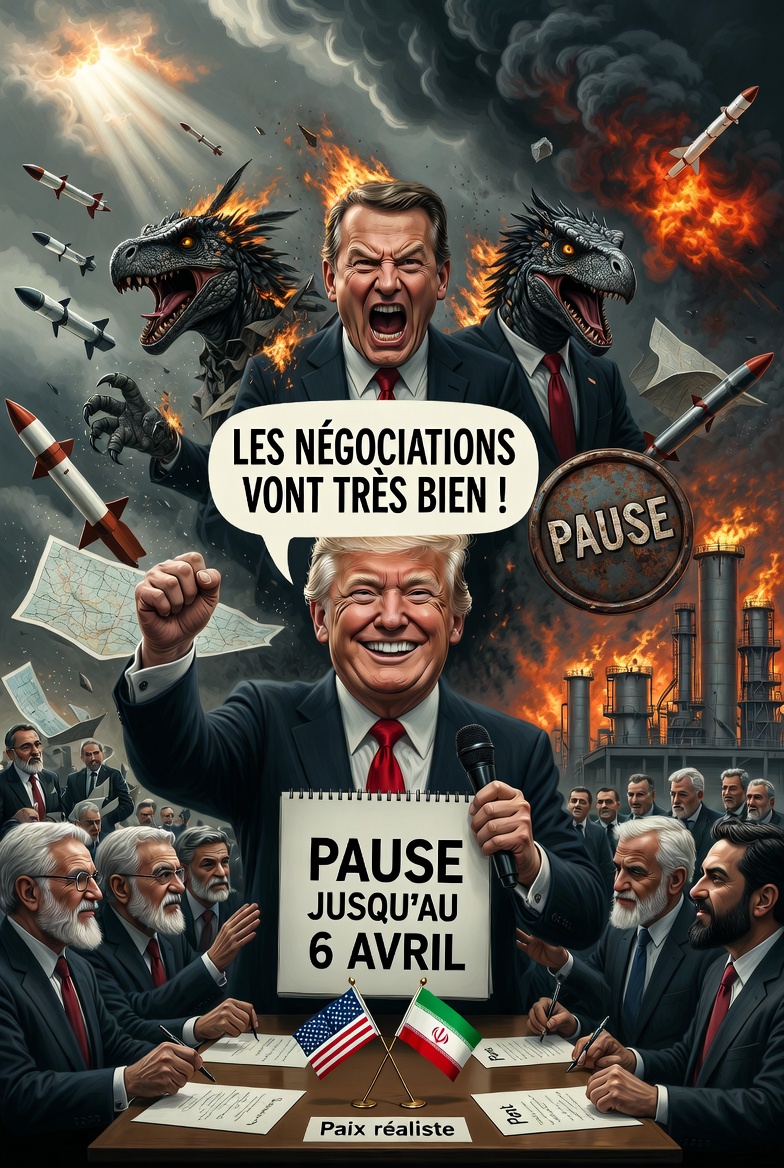 🇺🇸 États-Unis – 🇮🇷 Iran : Trump prolonge la pause sur les frappes des sites énergétiques iraniens jusqu’au 6 avril en affirmant que les négociations vont très bien ! Cette approche ferme déjoue les plans des faucons tout en poussant Téhéran vers un accord de paix réaliste.