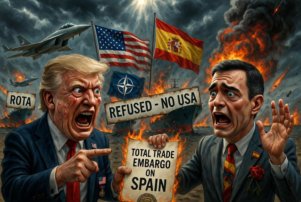🇺🇸 États-Unis – 🇪🇸 Espagne : Trump menace d’un embargo commercial total sur l’Espagne après le refus du gouvernement socialiste d’autoriser l’utilisation des bases militaires pour les frappes sur l’Iran ! Cette fermeté expose les faiblesses des alliés européens au sein de l’OTAN.
