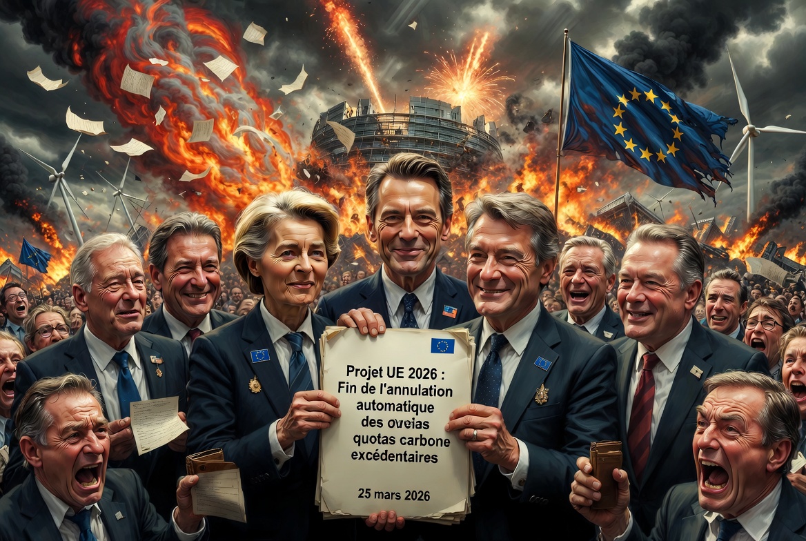 🇪🇺 Union européenne : L’Union européenne élabore un projet pour mettre fin à l’annulation automatique des quotas carbone excédentaires dans son système d’échange de droits d’émission, afin d’éviter une future volatilité des prix ! Cette initiative, révélée par des sources officielles le 25 mars 2026, souligne les dysfonctionnements persistants de la politique écologiste qui impose des coûts élevés sans stabiliser le marché énergétique.