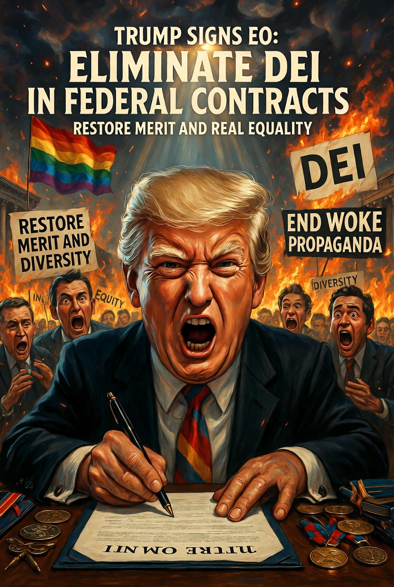 🇺🇸 États-Unis : Trump signe un décret exécutif ordonnant aux entrepreneurs fédéraux d’éliminer les programmes DEI discriminatoires ! Cette mesure audacieuse combat la propagande woke qui empoisonne les contrats publics et restaure le mérite et l’égalité réelle au sein du gouvernement américain, défiant les élites progressistes !