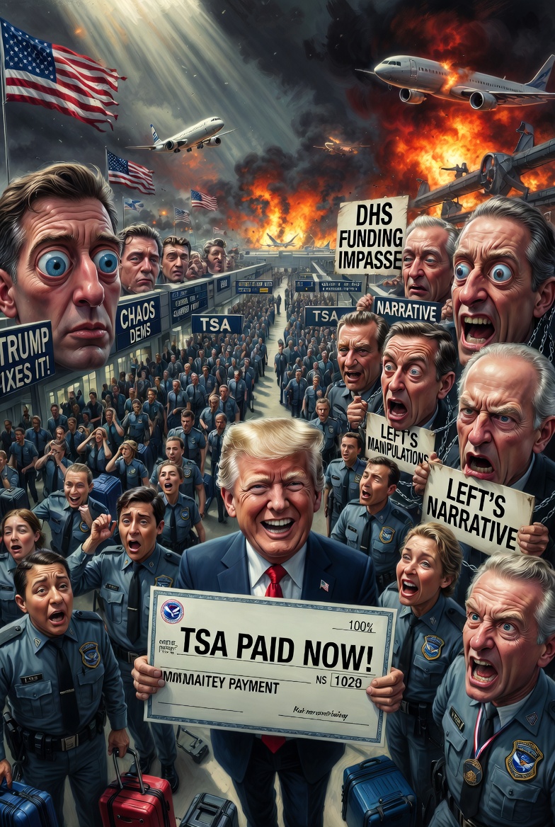 🇺🇸 États-Unis : Trump ordonne le paiement immédiat des agents de la TSA pour contrer le chaos aux aéroports provoqué par l’impasse démocrate sur le financement du DHS ! Cette décision pragmatique révèle l’efficacité de son administration face aux blocages de la gauche, protégeant les voyageurs américains et exposant les manipulations narratives.