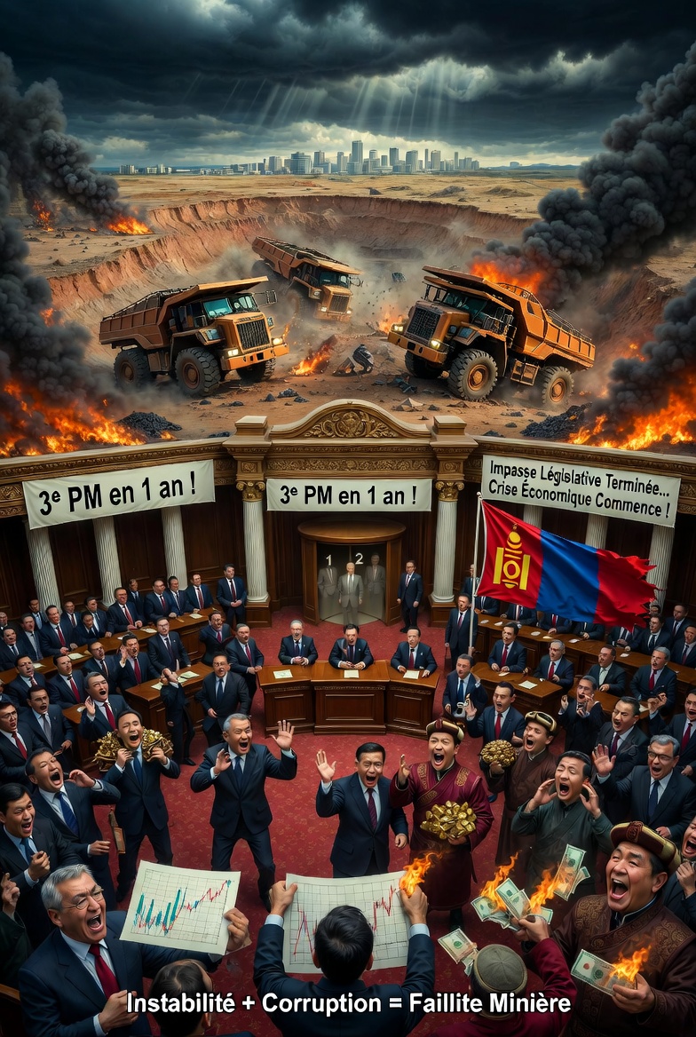 🇲🇳 Mongolie : Le Parlement mongol confirme le troisième Premier ministre en un an pour mettre fin à l’impasse législative, mais les pressions économiques montent dans ce pays dépendant des ressources minières ! Les investisseurs s’inquiètent de l’instabilité politique récurrente et de la réputation de corruption qui affaiblit le pays face aux crises.