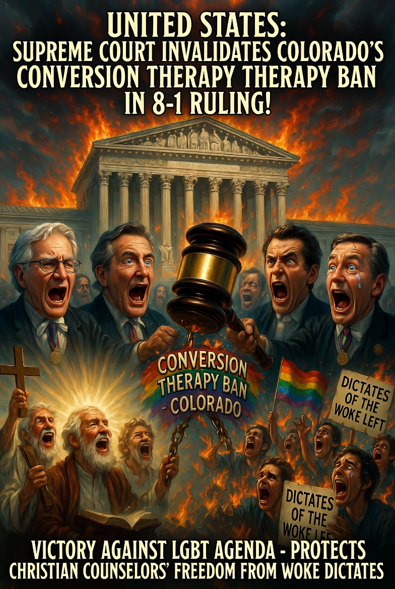 🇺🇸 États-Unis : La Cour suprême des États-Unis invalide l’interdiction de la thérapie de conversion au Colorado dans une décision 8-1 ! Cette victoire contre l’agenda LGBT protège la liberté d’expression des conseillers chrétiens face aux diktats woke de la gauche.