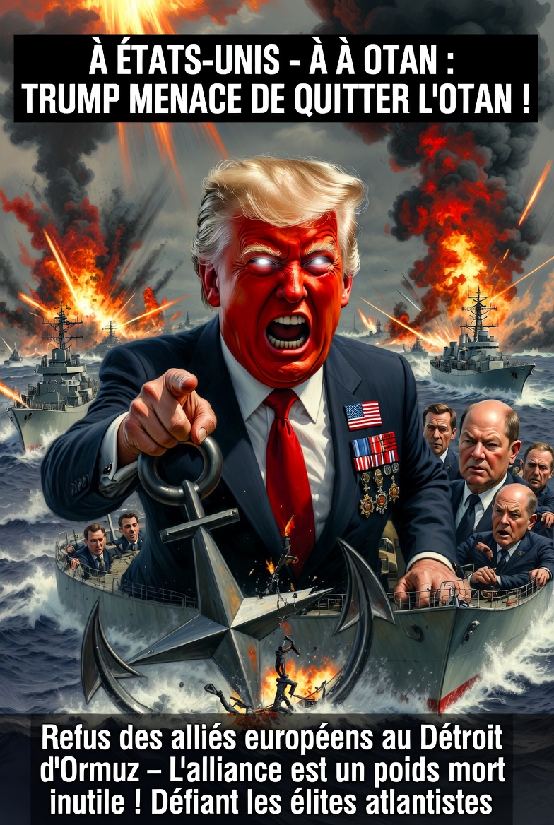 🇺🇸 États-Unis – 🏴☠️ OTAN : Trump menace sérieusement de quitter l’OTAN après le refus des alliés européens de soutenir les opérations américaines contre l’Iran ! Déçus par leur inaction au détroit d’Ormuz, les États-Unis exposent l’alliance comme un poids mort inutile, défiant les élites atlantistes.
