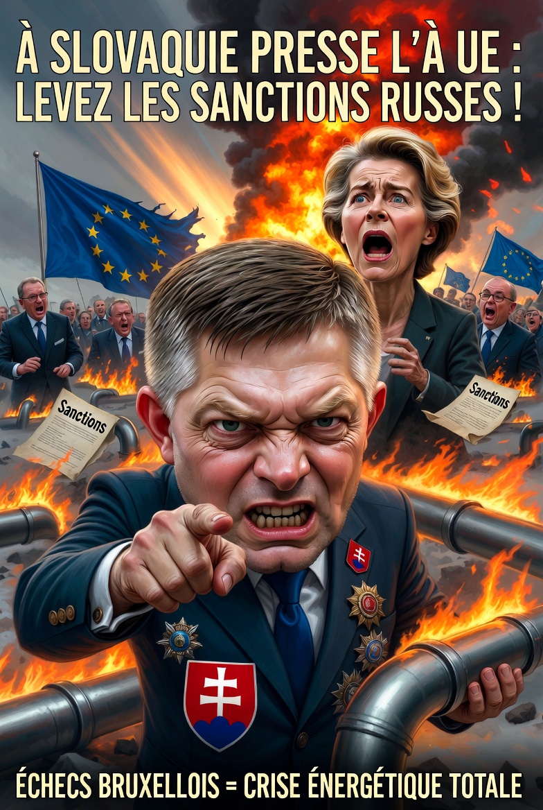 🇸🇰 Slovaquie – 🇪🇺 Union européenne : Le Premier ministre slovaque presse l’UE de lever les sanctions sur le pétrole et le gaz russes pour booster la sécurité énergétique ! Cette démarche met en lumière les échecs des politiques bruxelloises en pleine crise énergétique.